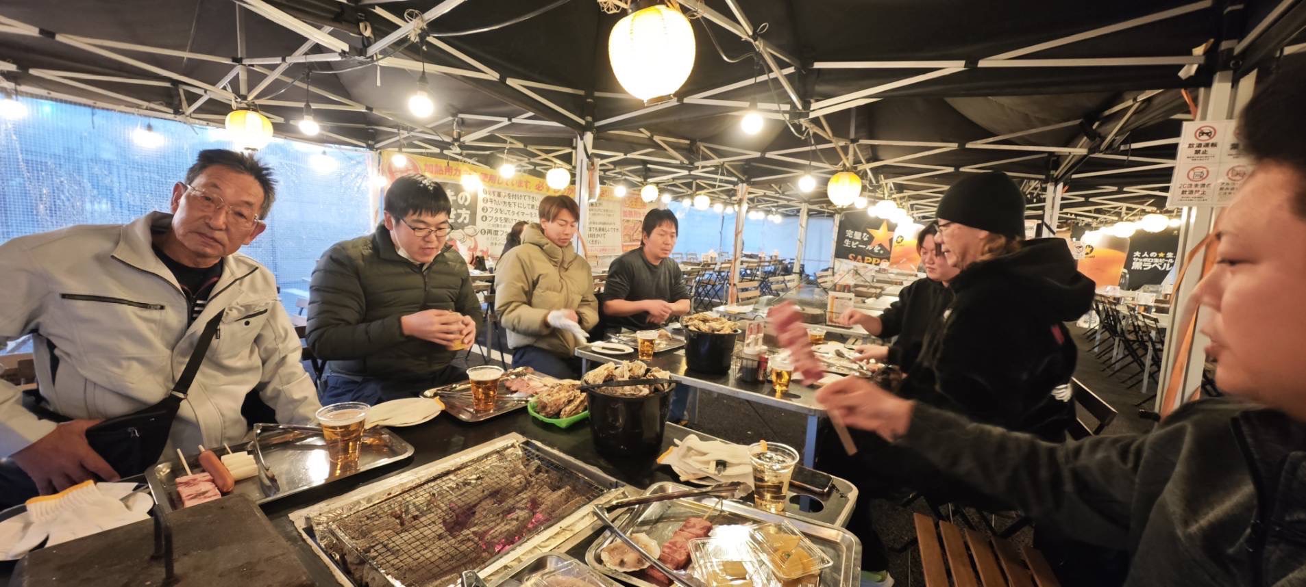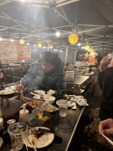 牡蠣小屋で楽しんでいるご様子を機関長さんが送って下さりました🥰🙇‍♂️