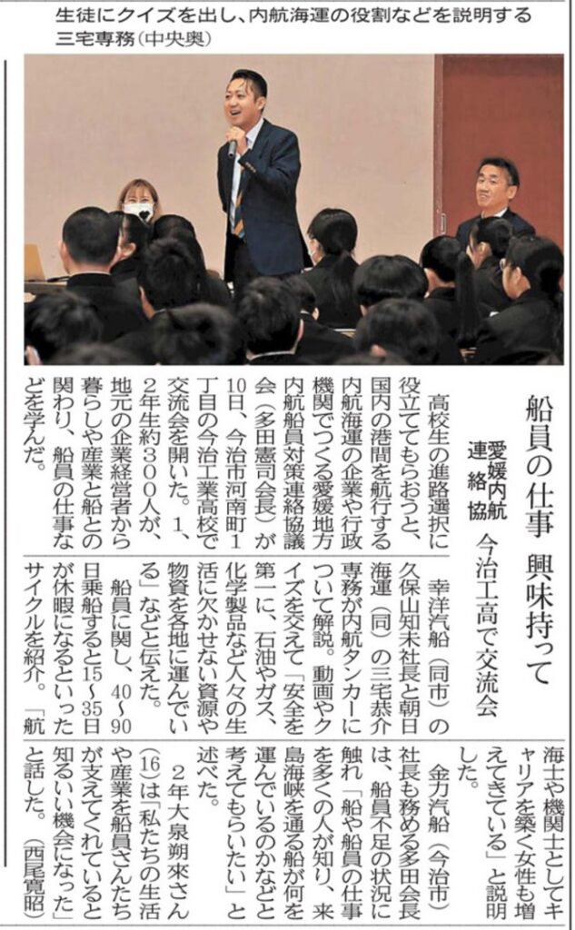 朝日海運の地元である波方町の小学校でも